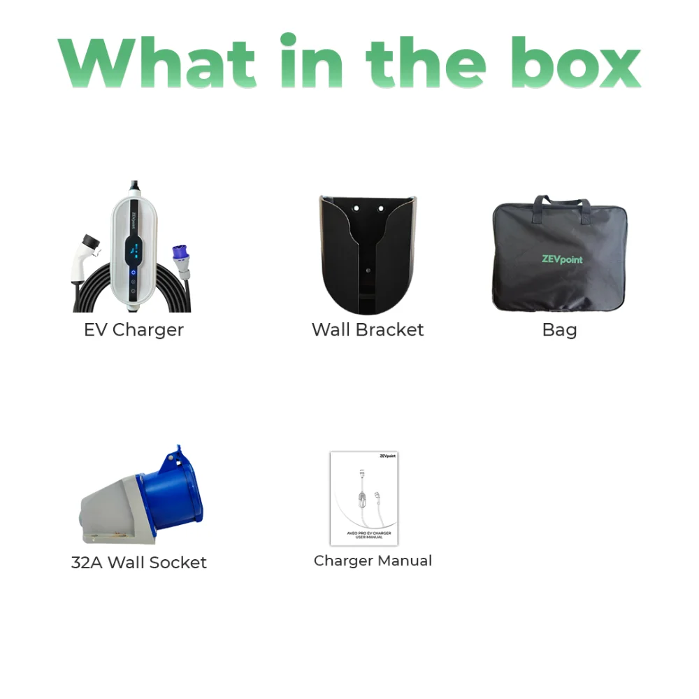 Enhance your EV charging flexibility with the Zevpoint Aveo Pro 7.2 kW Portable Charger, a smart, single-phase Type 2 solution designed for ultimate convenience. With adjustable current settings, scheduling features, and intuitive app control, it offers a fully customizable charging experience. Built to withstand tough conditions with an IP67 rating, it comes complete with a wall bracket, carry bag, and 32A CEE socket for a truly all-in-one setup. Seamlessly connect via Wi-Fi and Bluetooth using the Zevpoint Home app to control, monitor, and schedule your charging sessions, access detailed charging records, and manage everything right from your smartphone—available on both the Apple Store and Play Store.